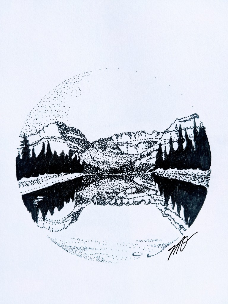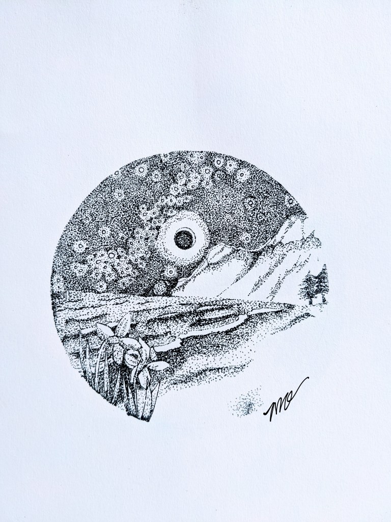 Simple nature illustrations in traditional media.